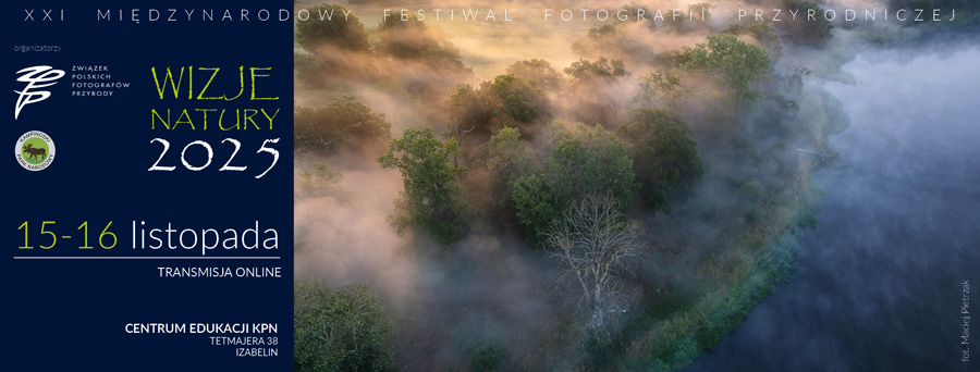Związek Polskich Fotografów Przyrody już po raz XXI zaprasza na Międzynarodowy Festiwal Fotografii Przyrodniczej „Wizje Natury”, który odbędzie się 15–16 listopada 2025 roku w Centrum Edukacji Kampinoskiego Parku Narodowego w Izabelinie.